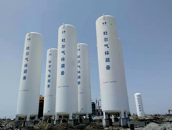 我公司生产的储槽大小规格不同5M3-250M3,压力0.7MPa-2.16MPa立式,卧式,非标都有。具有双层高真空绝热保温结构,类似于家用保温瓶结构及保温原理)的特种低温压力容器,主要用于贮存及运送温度为—196℃的液态工业气体(LO2、LN2、LAr、LCO2);